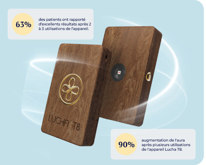 L'appareil émet un champ magnétique pulsé par la lumière et est utilisé pour améliorer la santé. La fréquence de 7,83 Hz émise par le Lucha T8 est la fréquence naturelle de la Terre, plus connue sous le nom de résonance de Schumann. Ces ondes de 7,83 Hz contribuent à ramener la fréquence perturbée des cellules à un niveau sain et naturel.